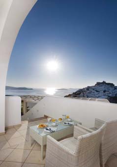 ΄Ολα τα δωμάτια έχουν ιδιωτικές βεράντες με καταπληκτική θέα στο Κάστρο, τον παραδοσιακό οικισμό του νησιού με τους γραφικούς ανεμόμηλους και την καταγάλανη θάλασσα του Αιγαίου, δημιουργώντας την ιδανική πρόταση για αξέχαστες διακοπές.